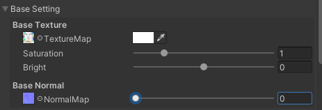 The saturation and brightness of the base texture and the strength of the normal can be adjusted.