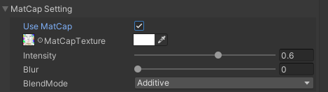 MatCapd can adjust the intensity of the texture with Intensity and adjust the blur intensity of the texture with Blur.